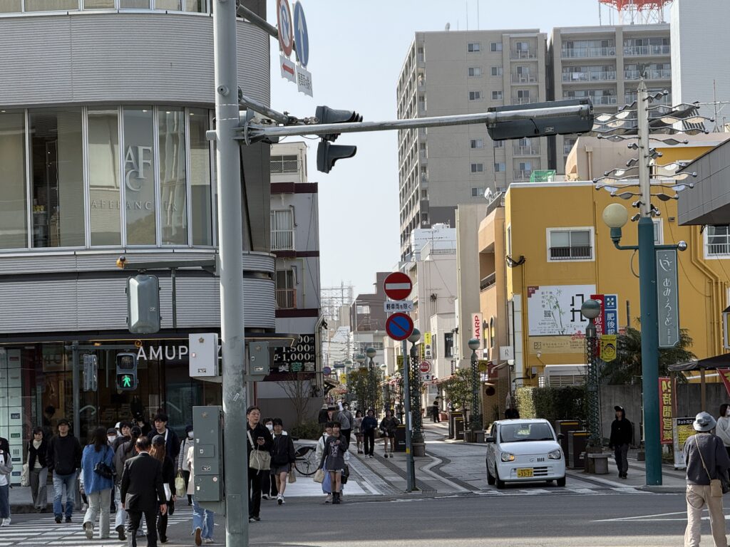 宮崎市にある**「あみーろーど」**は、「アミュプラザみやざき山館」も面しているストリートで、今最も活気あふれる商店街です。以前あった古いアーケードは撤去され、現在は電線の地中化や美しい石畳風の舗装が施された、開放的で歩きやすいストリートになっています。正式名称は「宮崎駅前商店街」ですが、「あみーろーど」という可愛らしい響きの名前には、通りに「阿弥陀堂」がある事と、フランス語の「アミ(Ami)」: フランス語で「友達」を意味する言葉をかけ合わせており、「友達のように親しみやすい商店街に」という願いが込められています。親しみやすい愛称で多くの地元住民や観光客に呼ばれています。