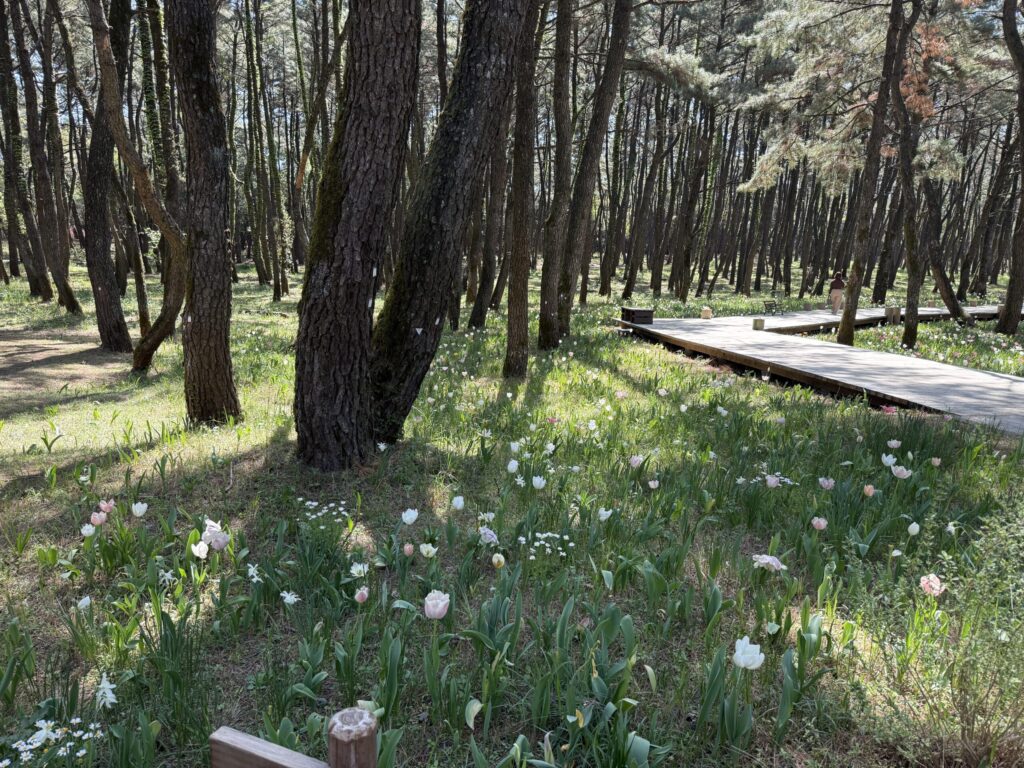 駐車場から英国式庭園へと向かう松林の中に広がる、約3,000平方メートルのナチュラルなガーデンです。