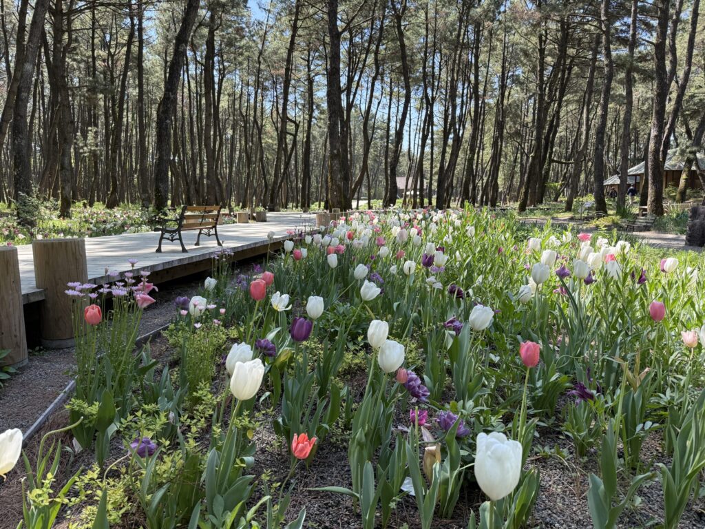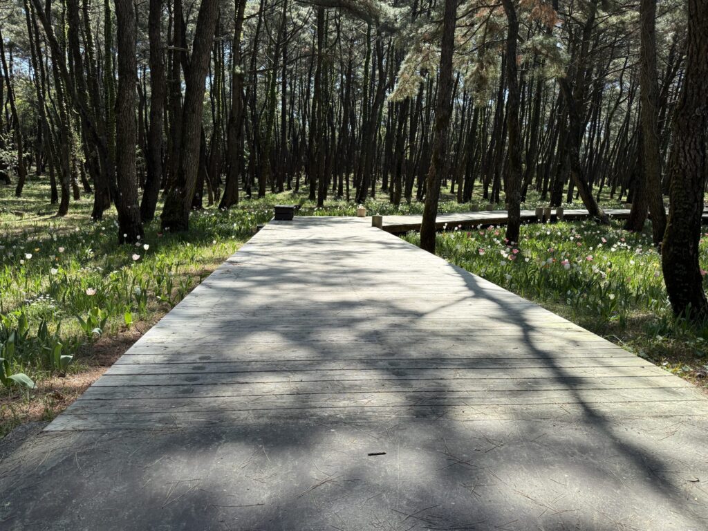 • 松林と調和する風景: 一ツ葉(ひとつば)の雄大な松林の環境を活かし、無理のない生態系や自然体な姿を大切に作られています。ウッドデッキの遊歩道が整備されており、松の木々の間から差し込む「木漏れ日」を浴びながら、心地よい散策が楽しめます。