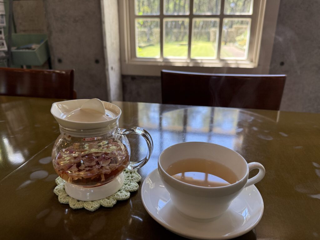 • ガーデンハウスカフェ: イギリスのコッツウォルズ地方の自然石を使った壁や、色鮮やかな青い塗装が目を引く建物です。カフェでは、美しい庭園を眺めながら優雅なアフタヌーンティーセットやハーブティー、紅茶を楽しむことができます(定休日:不定休。営業時間は11:00~LO15:30)。※営業日・営業時間は、公式HPにてご確認ください。リンク