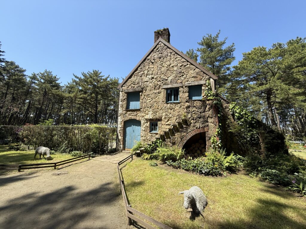 • こだわりの本格造り: 庭園内のレンガや敷石、農具などのガーデンオーナメントは、すべてイギリスから直接取り寄せられたものです。イギリスの田園風景に迷い込んだような本場の空気感を楽しめます。